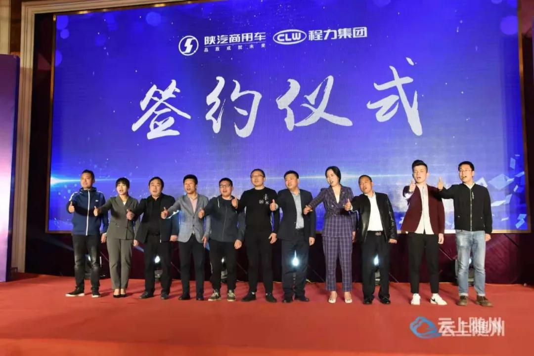 程力陜汽商用車底盤事業部負責人高波宣布了新產品價格和團購政策,與合作代表進行了簽約儀式,并合影紀念。